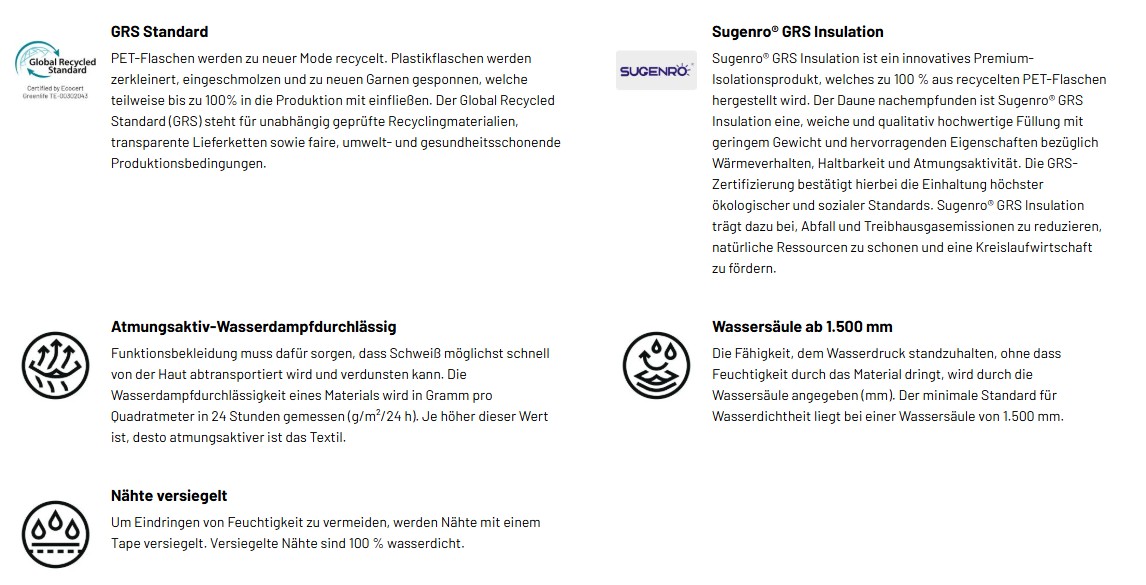 Oberstoff (158 g/m²): 100% Polyester (recycelt)