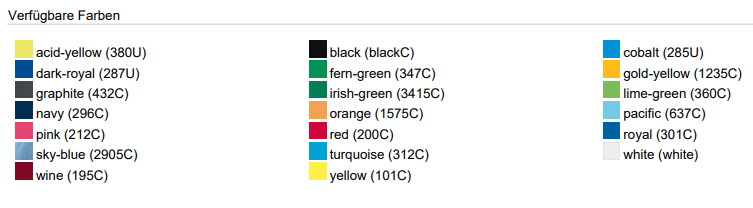 In 20 Farben erhältlich