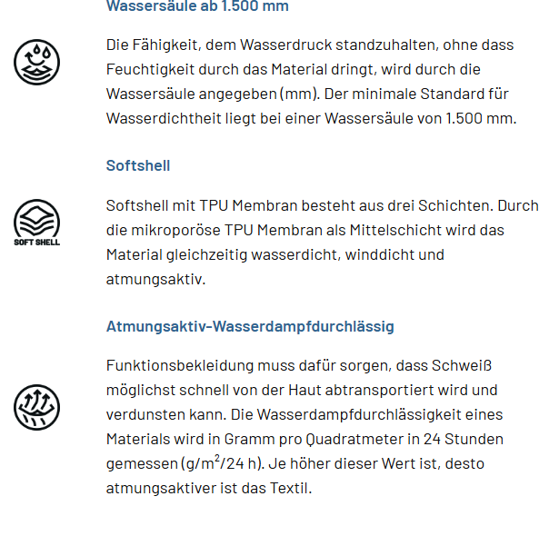 Oberstoff (330 g/m²): 95% Polyester, 5% Elasthan