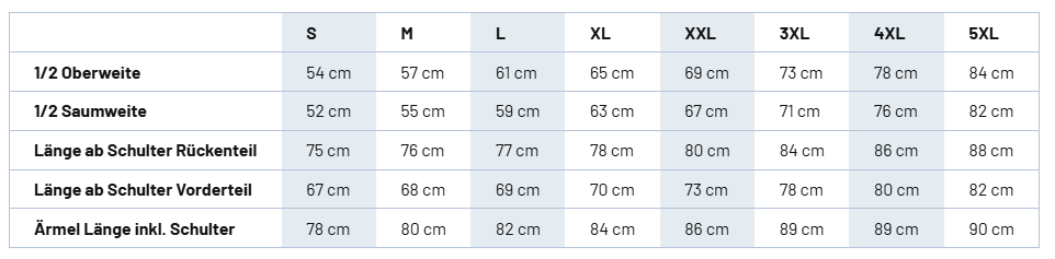 Oberstoff (330 g/m²): 95% Polyester, 5% Elasthan