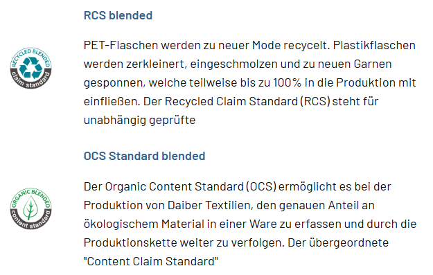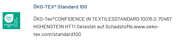 Oberstoff (300 g/m²): 85% Baumwolle, 15% Polyester