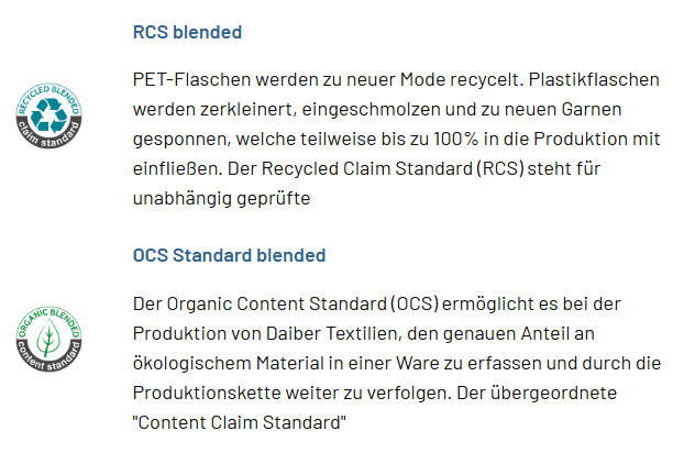 Oberstoff (300 g/m²): 85% Baumwolle, 15% Polyester